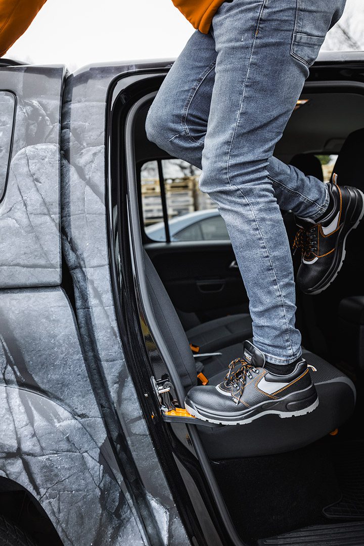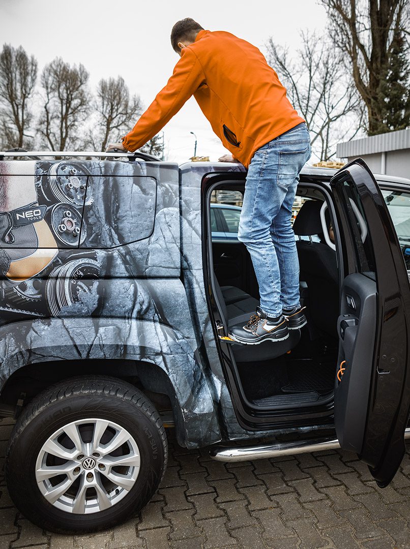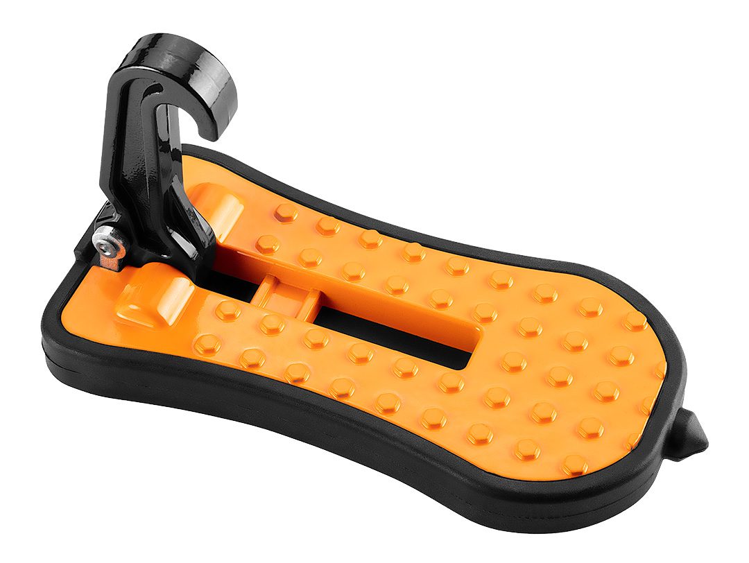 Підніжка автомобільна, позашляховик, універсал, багажник на дах 10-477 від NEO – це виріб 3 в 1, який буде працювати як універсальна автомобільна підніжка, захисний молоток та підставка для телефону. Має складну конструкцію, яку зручно зберігати. Він виготовлений з алюмінію, має неслизьку основу та м’яку гуму по краях для захисту лакофарбового покриття від пошкоджень. Сходинка має максимальну вантажопідйомність 230 кг. Легко встановлюється і підходить для всіх легкових і вантажних автомобілів. Його розміри складають 150 х 99 х 99 мм.