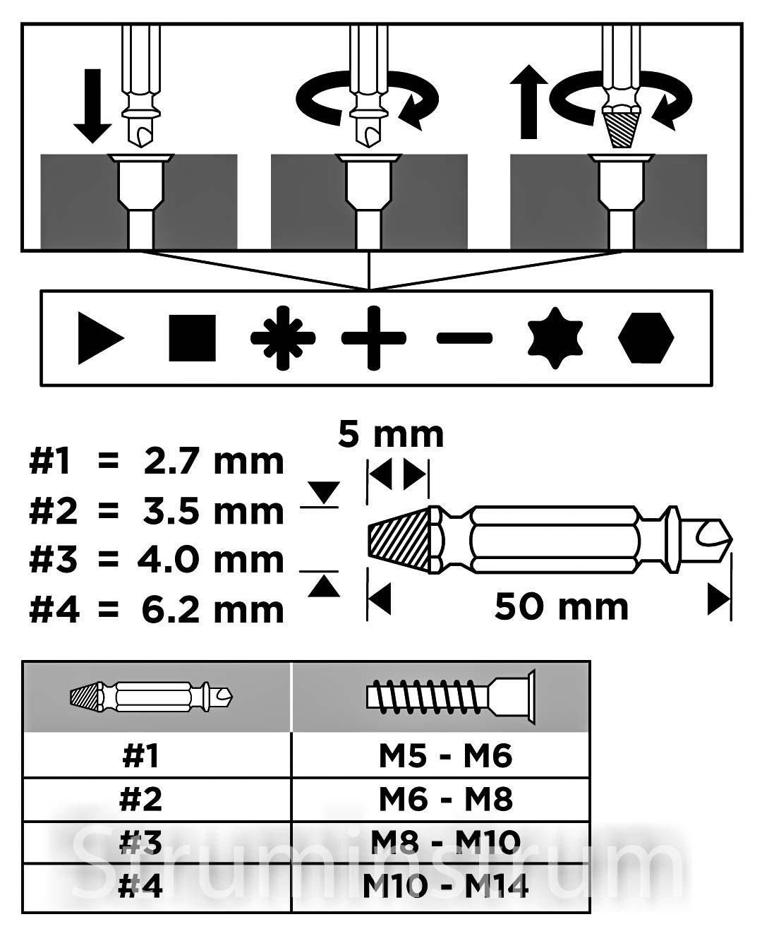 - Призначені для гвинтів від M5 до M14
