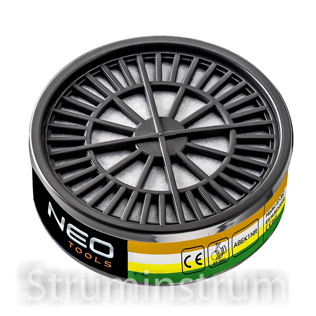 Фільтр – поглинач ABEK1 NR NEO (арт. 97-362) забезпечує захист дихальних шляхів від органічних, неорганічних, кислотних газів і газів аміаку. Для використання з півмаскою NEO 97-350. Маркування CE ― це гарантія безпеки, яка доводить, що продукт відповідає всім вимогам Європейського Союзу.