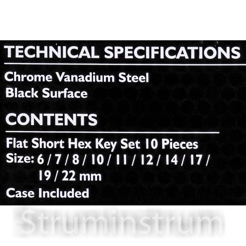 - Розміри ключів: 6, 7, 8, 9, 10, 12, 14, 17, 19, 22 мм