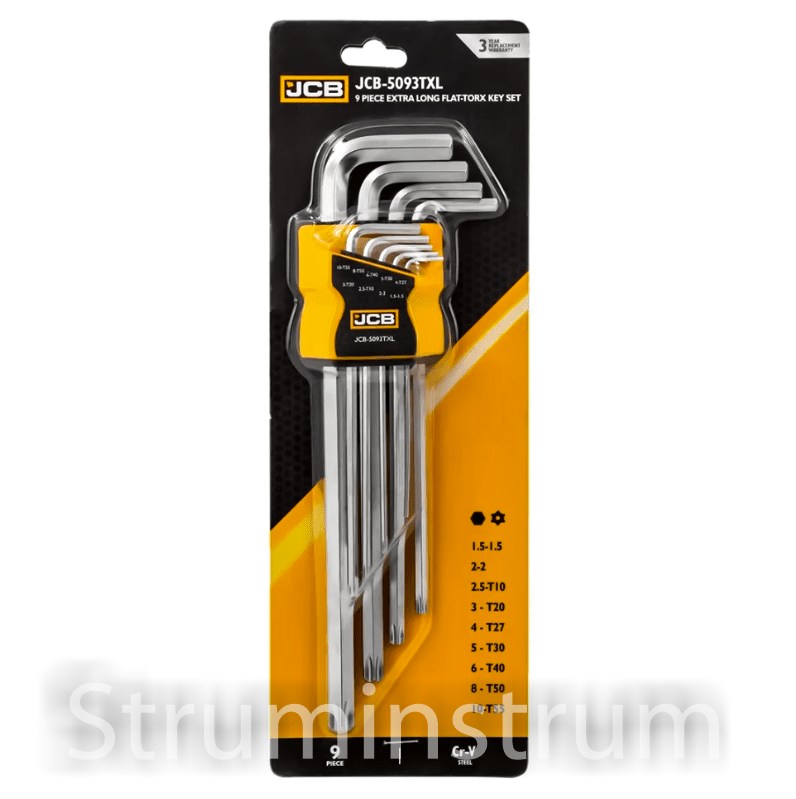 Будьте першим, хто залишив відгук на “Набір ключів JCB HEX/TORX 9 од. Г-подібні модель JCB-5093TXL (60957)”
