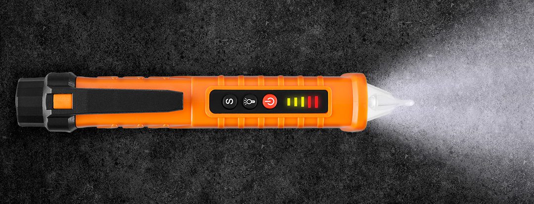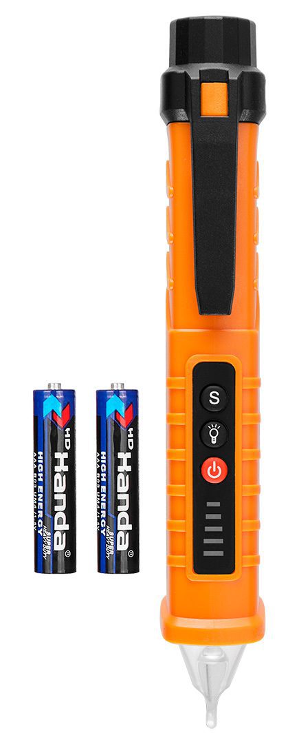 Індуктивний тестер напруги 12-1000 В змінного струму 94-007 від NEO підтримує контактний (70-250 В змінного струму) і безконтактний (70-1000 В змінного струму) методи. Має загальну довжину 145 мм. Оснащений світлодіодним ліхтарем для допомоги, звуковим індикатором, індикатором низького заряду батареї та практичним кишеньковим затискачем. Призначений для пошуку пошкоджень в ізольованих кабелях змінного струму, перевірки фази в електричних розетках змінного струму та знаходження проводів під напругою в стіні під штукатуркою. Тестер напруги марки NEO оснащений джерелом живлення 2x AAA. Частота становить 50/60 Гц. Він має функцію тестування точки обриву і тест на безперервність. Це інструмент, який може легко знайти несправність в електричній установці.