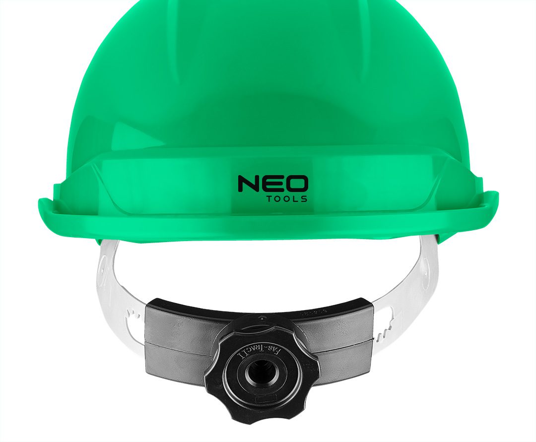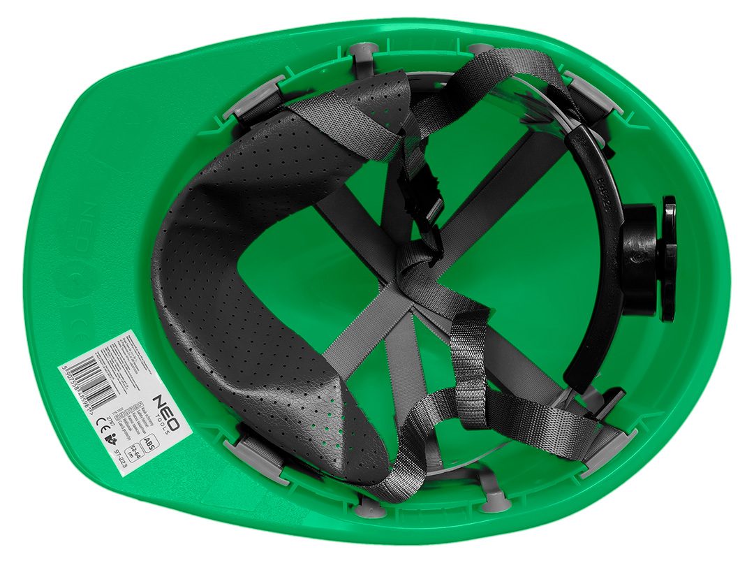 Каска промислова з підборідним ременем, зелена 97-223 від NEO – це гарантований захист та комфорт голови. Каска призначена для працівників, які піддаються ризику отримання травм. Стане в нагоді при роботі на риштуваннях, в складських приміщеннях і на земляних роботах. Він має регульовану окружність 52-64 см і виготовлений з матеріалу ABS. Оснащений 6-точковими ременями безпеки та 4-точковим підборідним ременем, він захищає від ударів таких предметів, як каміння, плитка, цегла та інші предмети, які можуть становити потенційну небезпеку. Каска може використовуватися в діапазоні температур -30°С/+50°С. Автоматичне регулювання по колу за допомогою ручки спрощує надягання і підгонку виробу. Вентиляційні отвори та пов’язка, що пропонуються в комплекті, сприяють комфорту в касці навіть при багатогодинному виконанні завдань. Він має сертифікат CE.