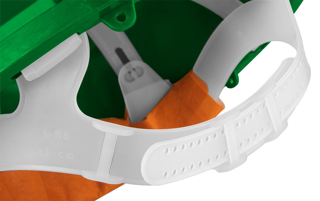 Захисна каска NEO зеленого кольору (арт. 97-203) виготовлена з матеріалу HDPE. Має регульований обхват основного ременя від 55 до 65 см, що дозволяє пристосувати каску до голови. Каска оснащена 6-ти точковими ременями та підшоломником. Виріб важить 322г. Каска захищає від травм, викликаних падінням предметів, таких як каміння, черепиця, цегла та інші подібні предмети. Підходить для використання на електроустановках – захищає від електричних розрядів від 1000В змінного струму і 1500В постійного струму (низьковольтні установки).