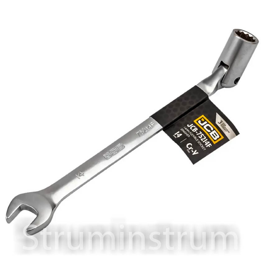Ключ рожково-шарнірний, комбінований 14мм, серія JCB-75214F (66105)Ключ рожково-шарнірний, комбінований 14мм, серія JCB-75214F (66105)