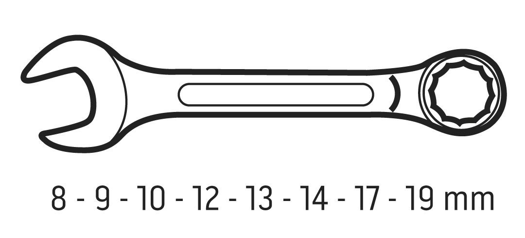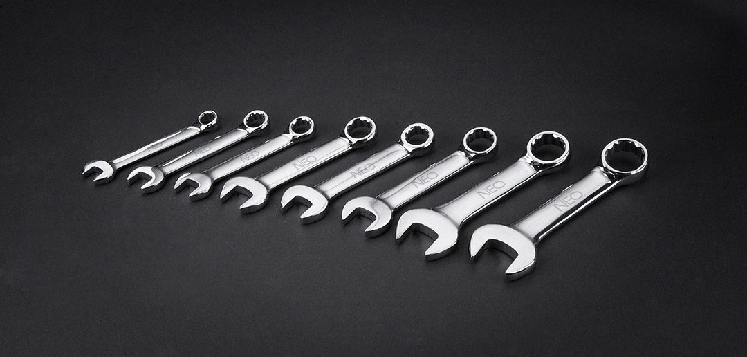 Набір коротких рожково-накидних ключів NEO містить 8 ключів популярних розмірів (від 8 до 19 мм), виготовлених згідно зі стандартом DIN 3113. Високоґатункова хромванадієва сталь гарантує надійність ключа на довгі роки. Коротке плече ключа уможливлює роботу у важкодоступних місцях. Інструменти продаються в практичному футлярі, з надрукованими розмірами ключів, що сприяє їх упорядкованому зберіганню. Якість інструменту підтверджена сертифікатом TÜV і 25-річною гарантією виробника. Марка NEO відповідає очікуванням професіоналів.