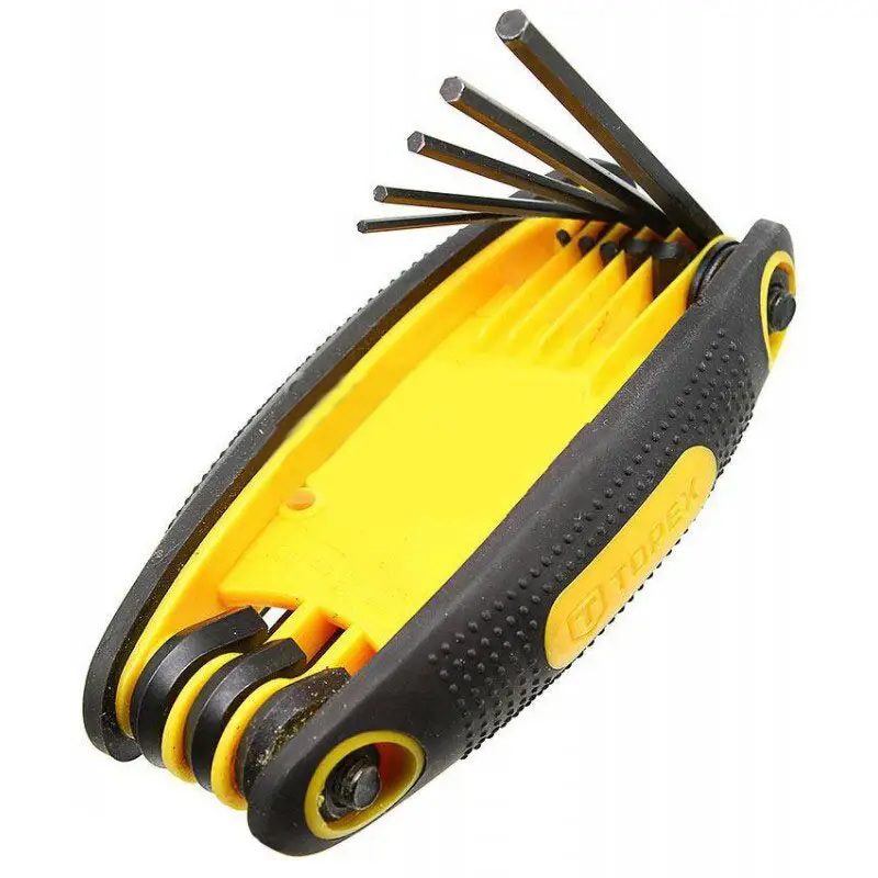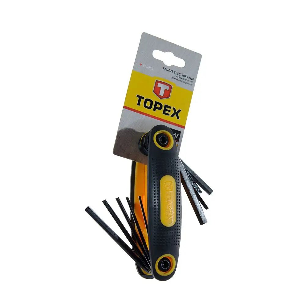 Ключі шестигранні TOPEX розмірами 1,5-6 мм. Виготовлені з міцної хромванадієвої сталі, що забезпечує подовжений ресурс продукту. Ручка з пластику, вкрита протиковзним матеріалом, забезпечує комфорт під час експлуатації. Завдяки практичній конструкції ручки сховані в ній ключі залишаються завжди комплектними та становлять основне обладнання для кожного майстра. Марка TOPEX адресована майстрам, які займаються дрібним ремонтом.
