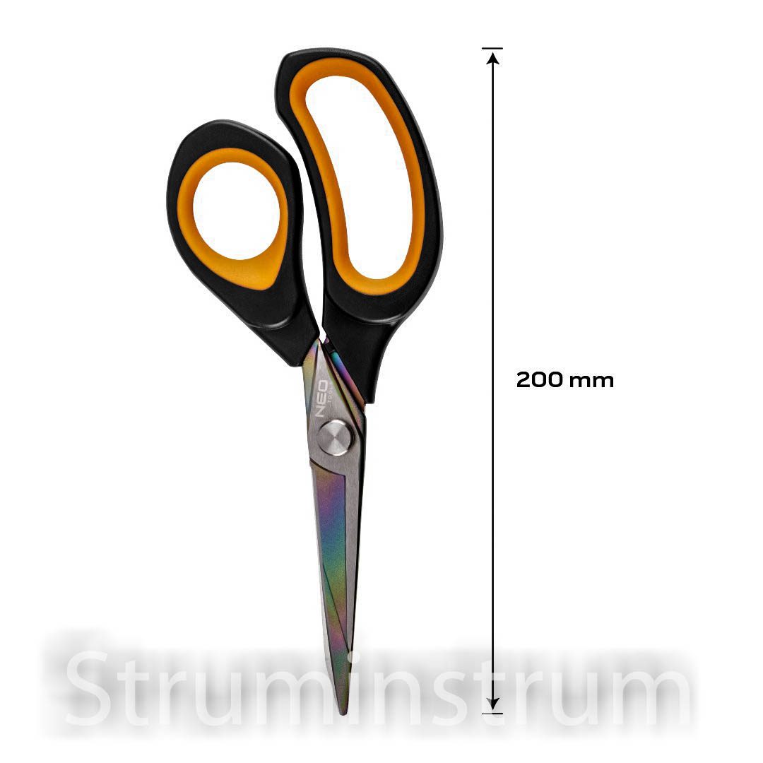 Ножиці ковані, титанове покриття 200 мм 64-003 від NEO TOOLS – ковані ножиці довжиною 200 мм. Оснащені лезами з титановим покриттям, вони забезпечують міцність, стійкість до корозії та комфорт використання протягом тривалого часу. Мають двокомпонентну ручку для комфортного різання. Для універсального використання.