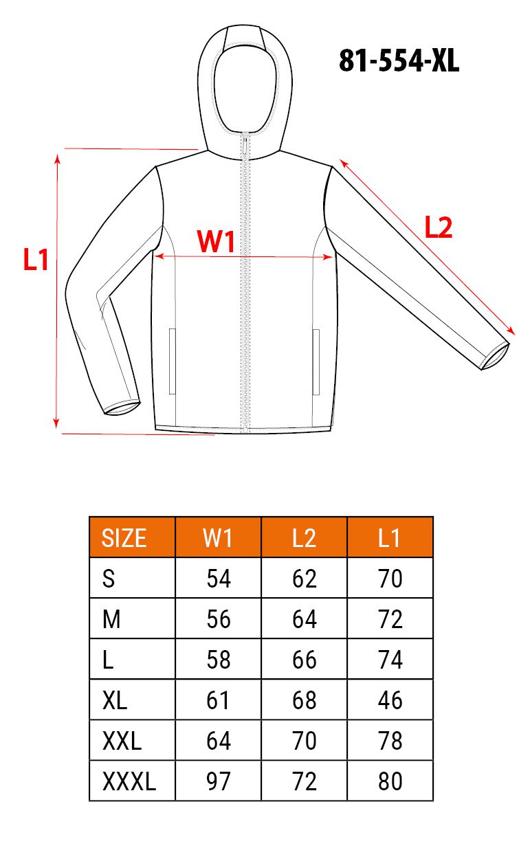 Стегана робоча куртка, бавовна 70% і поліестер 30%, кишені на блискавці, еластична утяжка на рукавах і в поясі, капюшон з утяжкою, що не відстібається, утеплювач 100% поліестер, сертифікат CE