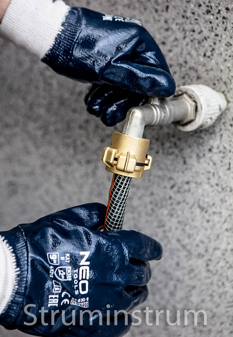 Швидка з’єднувальна муфта для шланга латунна, 1/2" 15-620 від NEO – це з’єднувальна муфта, призначена для садових шлангів діаметром 1/2", для приєднання до двох кінців. Рекомендується у всіх видах установок і зрошувальних системах. Виготовлений з міцної латуні, роз’єм забезпечує достатню герметичність і зручність використання протягом багатьох років. Він включає в себе гумовий ущільнювач і черв’ячні стрічки, що успішно затискають шланг в місцях з’єднання.