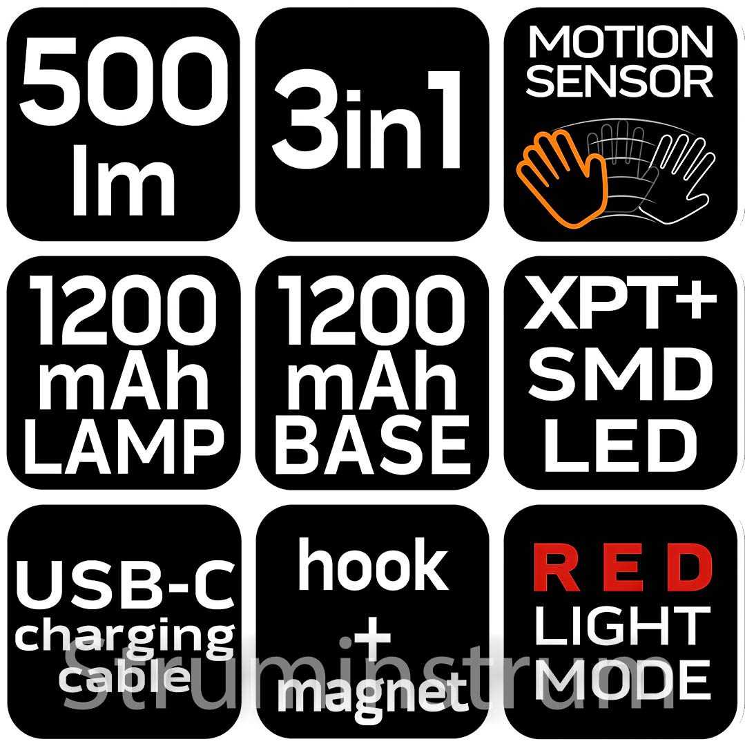 - Стаціонарне освітлення завдяки базі з магнітом