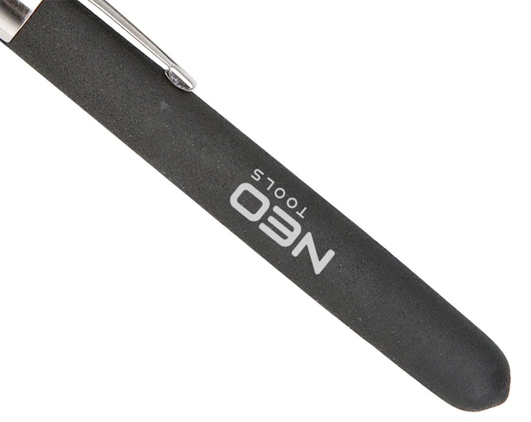 Телескопічний магнітний захват 160-610 мм 11-610 від NEO – це інструмент з діапазоном від 160 до 610 мм, що характеризується вантажопідйомністю 3 кг і ергономічною прогумованою ручкою. Захват оснащений магнітом, що дозволяє витягувати різні типи сталевих елементів (гайки, ключі, гвинти) з важкодоступних місць. Виріб також оснащений кліпсою, яка дозволяє зберігати захват в кишені, як звичайну ручку. Він не займає багато місця і ідеально підходить для повсякденних завдань будь-якого користувача автотранспорту.