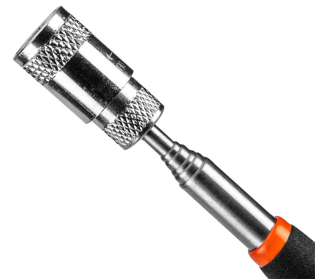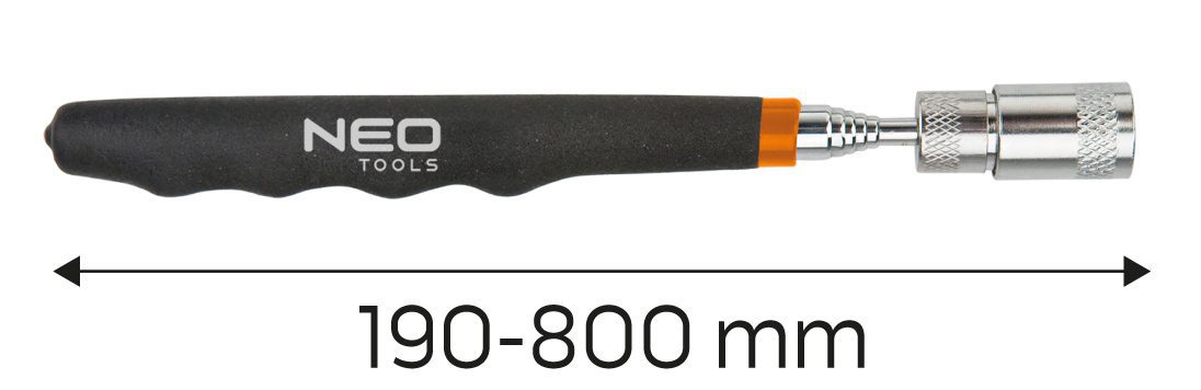 Магнітний телескопічний захват 190-800 мм 11-611 від NEO – це інструмент з діапазоном від 190 до 800 мм, що характеризується вантажопідйомністю 3,5 кг і ергономічною прогумованою ручкою. Захват оснащений магнієм, що дозволяє витягувати різні типи сталевих елементів (гайки, ключі, болти) з важкодоступних місць. Він також має практичний світлодіодний ліхтар для освітлення простору. Виріб також оснащений кліпсою, яка дозволяє зберігати захват у кишені, як звичайну ручку. Він не займає багато місця і ідеально підходить для повсякденних завдань будь-якого користувача автотранспорту.