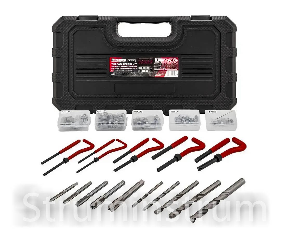 Набір FORCEKRAFT FK-9131U1 — професійний комплект для ремонту та відновлення пошкодженої внутрішньої різьби. Система базується на спіральних різьбових вставках (койлах) і включає всі необхідні інструменти для роботи з популярними метричними розмірами: M5, M6, M8, M10 та M12.