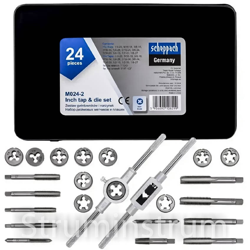 Набір дюймових мітчиків та плашок Scheppach SCH-M024-2, 24 пр. (арт. 64901)