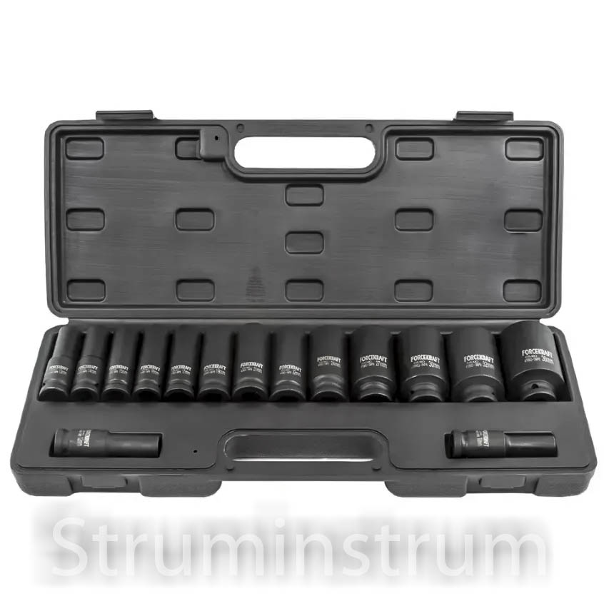 Набір ударних головок глибоких FORCEKRAFT FK-4166D-5MPB 1/2″, 15 пр. (арт. 54558)