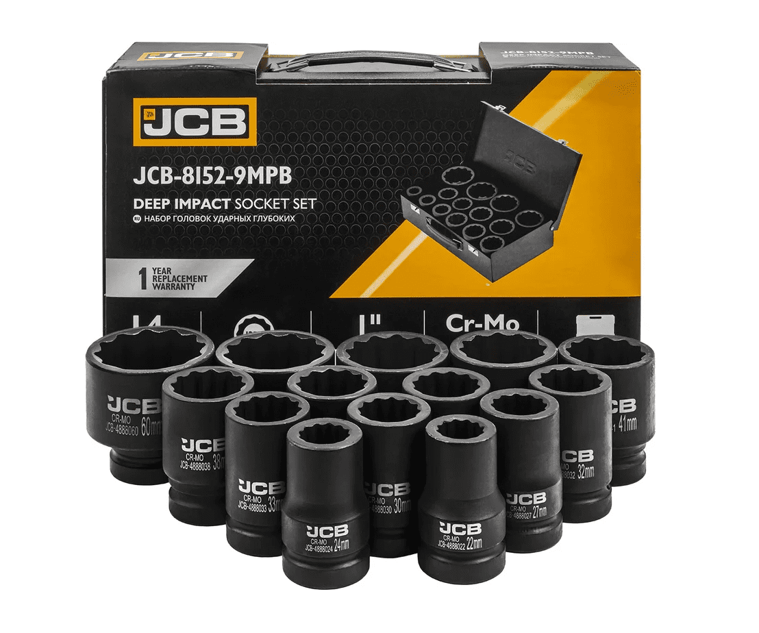Набір головок JCB ударних глибоких 14 од. 1″ (22–60 мм) модель JCB-8152-9MPB (64929)