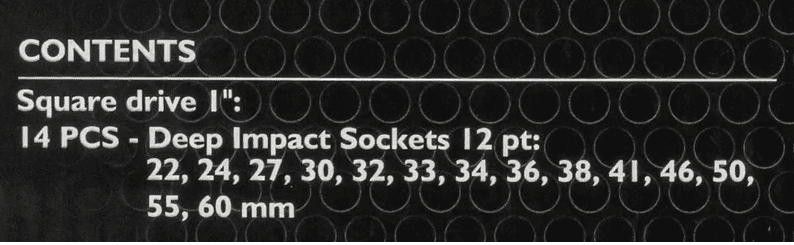 Набір головок JCB ударних глибоких 14 од. 1"  (22–60 мм)  модель JCB-8152-9MPB (64929)Набір головок JCB ударних глибоких 14 од. 1″ (22–60 мм) модель JCB-8152-9MPB (64929)