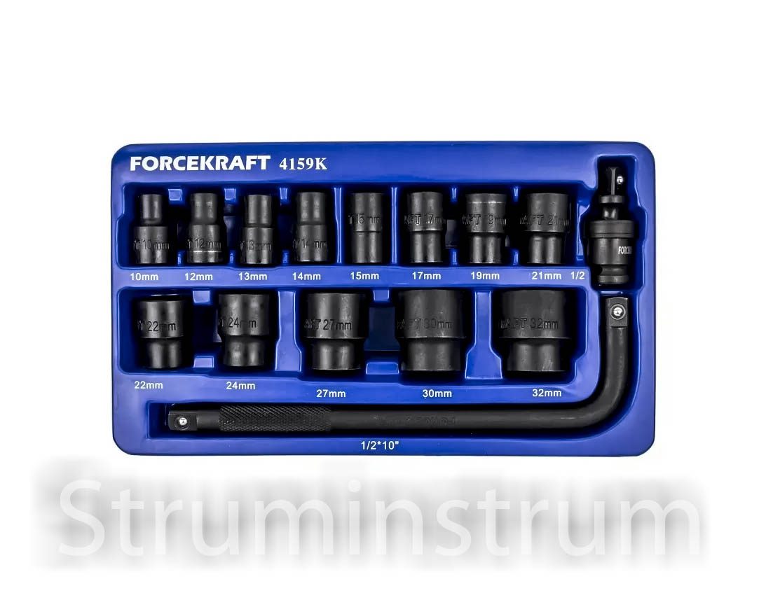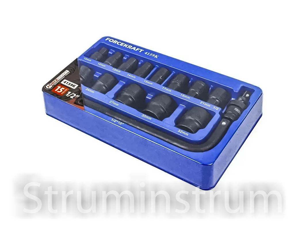 Набір головок ударних в ложементі 1/2, 15 пр. (10-32 мм) FORCEKRAFT серія FK-4159K (58404)
