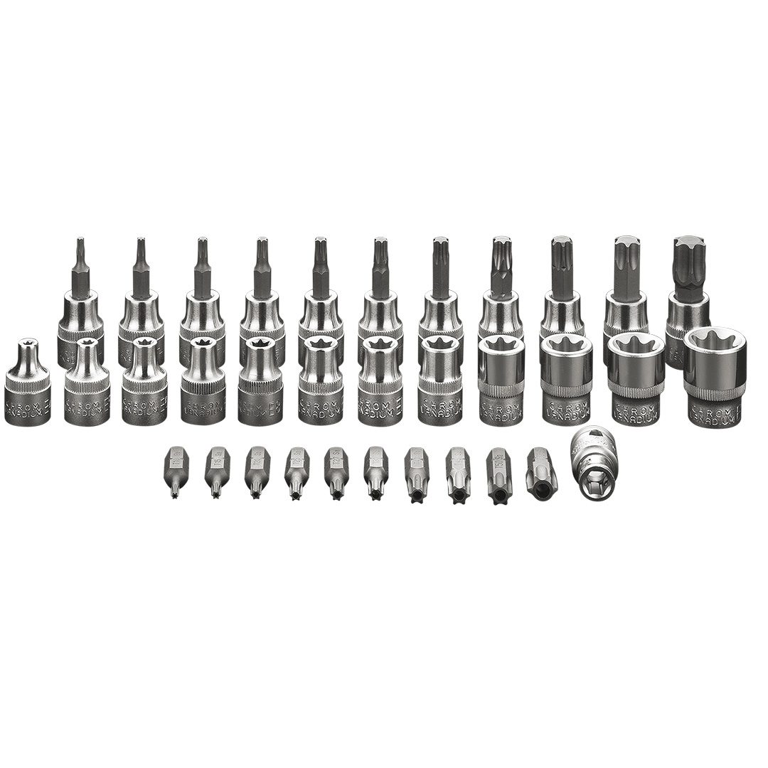 Біти-наконечники Torx 3/8" NEO (арт. 08-711). Набір складається з 34 шт. насадок Torx, які використовуються, у тому, до сервісного обслуговування та ремонту автомобілів популярних марок. У наборі представлений широкий асортимент бітів і насадок Torx, Torx із отвором і насадок розмірів від E4 до E20. Усі насадки виготовлені з міцної хромванадієвої сталі, що гарантує довговічність. Увесь набір постачається у практичній скрині з пластику. Якість інструменту підтверджена сертифікатом TÜV і 25-річною гарантією виробника. Марка NEO відповідає очікуванням професіоналів.