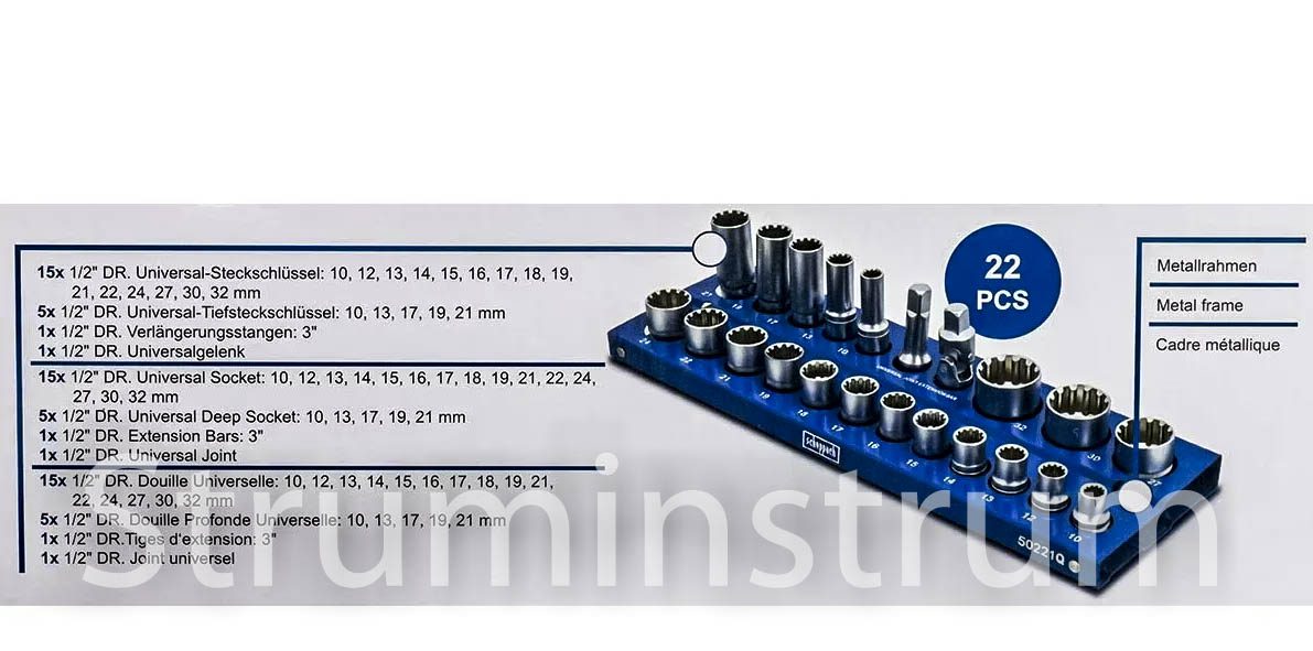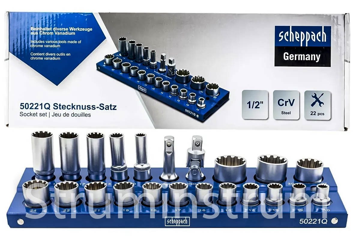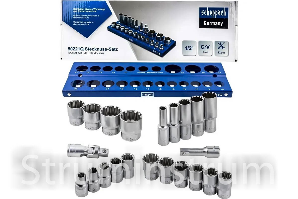 Набір головок SPLINE Scheppach SCH-50221Q, 1/2″, 22 пр. (10–32 мм) (арт. 60205)