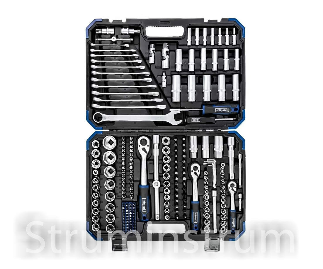 Набір інструментів 216+2 пр. 1/4", 3/8", 1/2" (6гр.) модель Scheppach-38841+2 (59300)Набір інструментів 216+2 пр. 1/4″, 3/8″, 1/2″ (6гр.) модель Scheppach-38841+2 (59300)