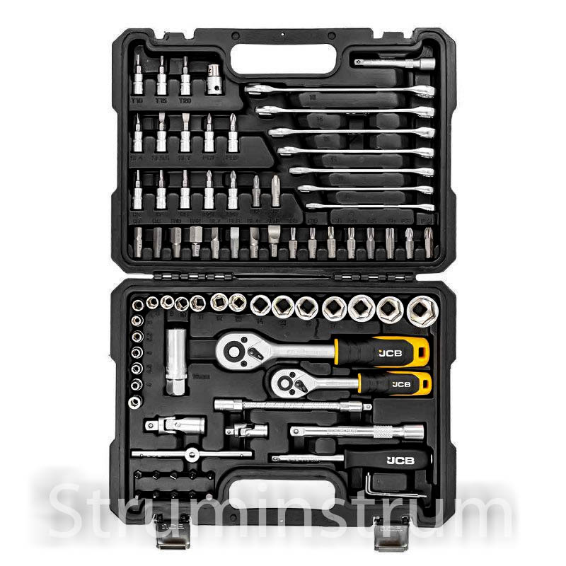 Набір інструментів для виконання слюсарних, ремонтних, монтажних робіт. Набір має низку переваг, які дозволяють значно полегшити виконання робіт при обслуговуванні та ремонті автомобільного засобу. Інструменти виготовлені з високоякісної хромованадієвої сталі, що забезпечує їхню міцність, довговічність та надійність. Включає необхідні інструменти для будь-якого типу ремонту автомобіля, включаючи свічки запалювання, гальма та обслуговування двигуна.