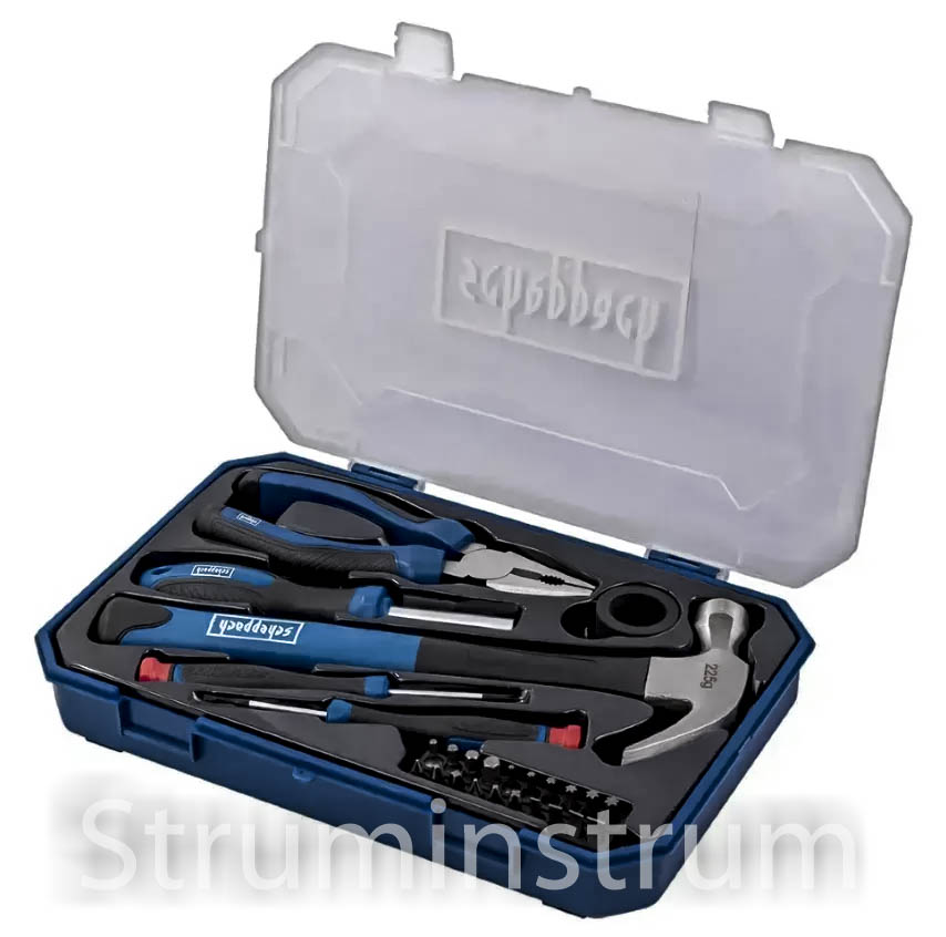 Scheppach Sch-2261K – універсальний набір із 26 інструментів, створений для слюсарних та монтажних завдань. Він стане надійним помічником у побуті, на дачі чи в гаражі, забезпечуючи швидке та якісне виконання дрібного ремонту.