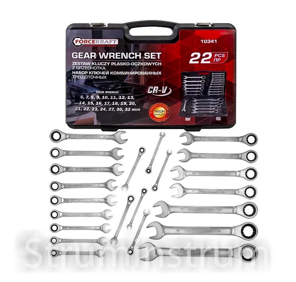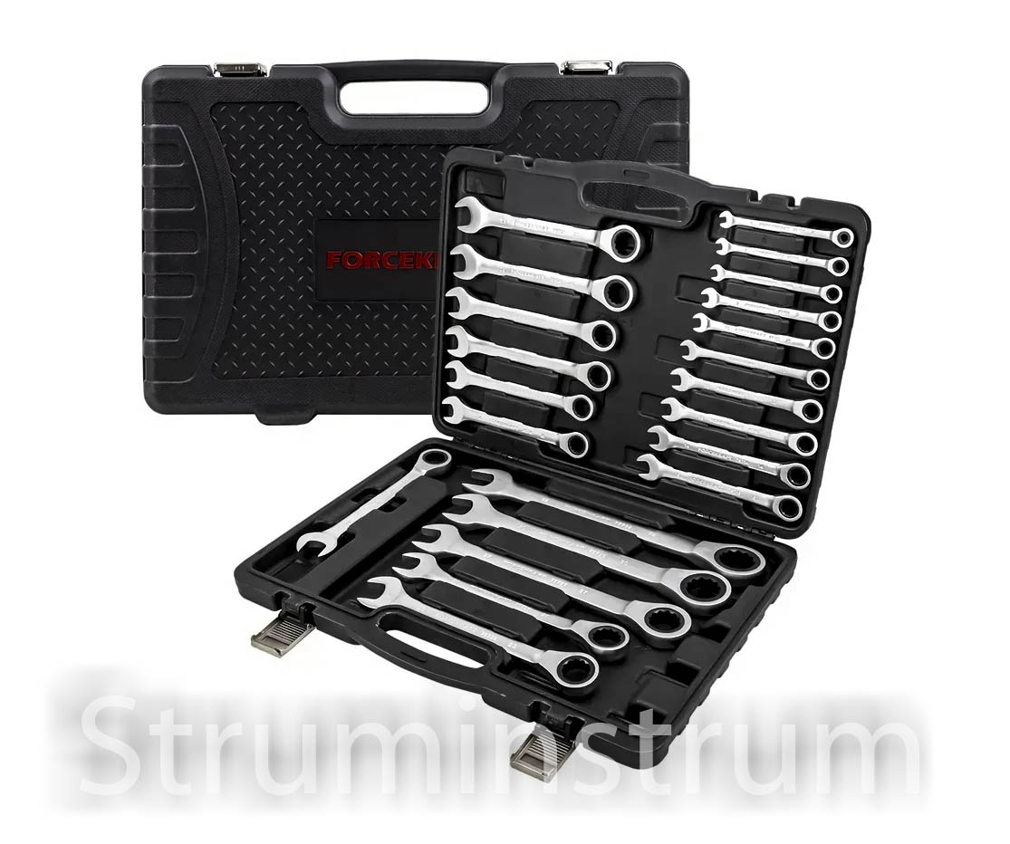 Набір комбінованих ключів з тріскачкою 22 предмети в кейсі (6-32 мм) FORCEKRAFT серія FK-10341 (64762)