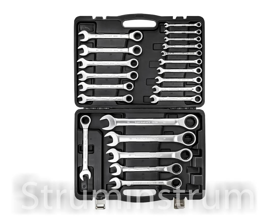 Набір комбінованих ключів з тріскачкою 22 предмети в кейсі (6-32 мм) FORCEKRAFT серія FK-10341 (64762)Набір комбінованих ключів з тріскачкою 22 предмети в кейсі (6-32 мм) FORCEKRAFT серія FK-10341 (64762)