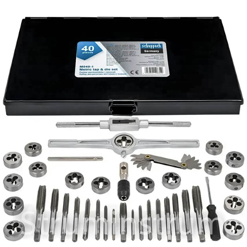 Набір метричних та дюймових мітчиків і плашок Scheppach SCH-M040-1 (40 предметів)
