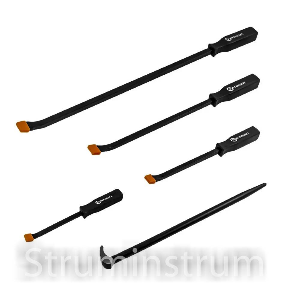 FORCEKRAFT FK-904U5A — професійний набір із 5 монтажних важелів для демонтажу, підйому та важких робіт. Виготовлений із високовуглецевої сталі з антикорозійним покриттям, забезпечує максимальну міцність та довговічність. Ергономічні рукоятки гарантують комфорт і контроль, а захисні ковпачки зберігають інструмент та поверхні від пошкоджень.