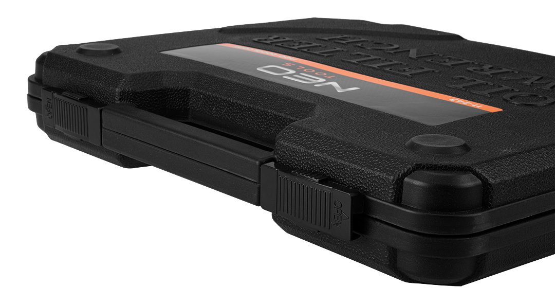 Торцеві ключі для масляного фільтра – набір з 16 шт. NEO для професійних майстерень та автосервісів, а також для просунутих любителів. Набір торцевих ключів чашки. Вони використовуються для відкручування металевих масляних фільтрів у автомобілях. Крім гайкових ключів, набір також входить редуктор 3/8″ – 1/2″. Набір знаходиться в спеціальному кейсі, кожен із елементів має підписане місце, що полегшує підтримку порядку та швидкий пошук потрібного роз’єму.