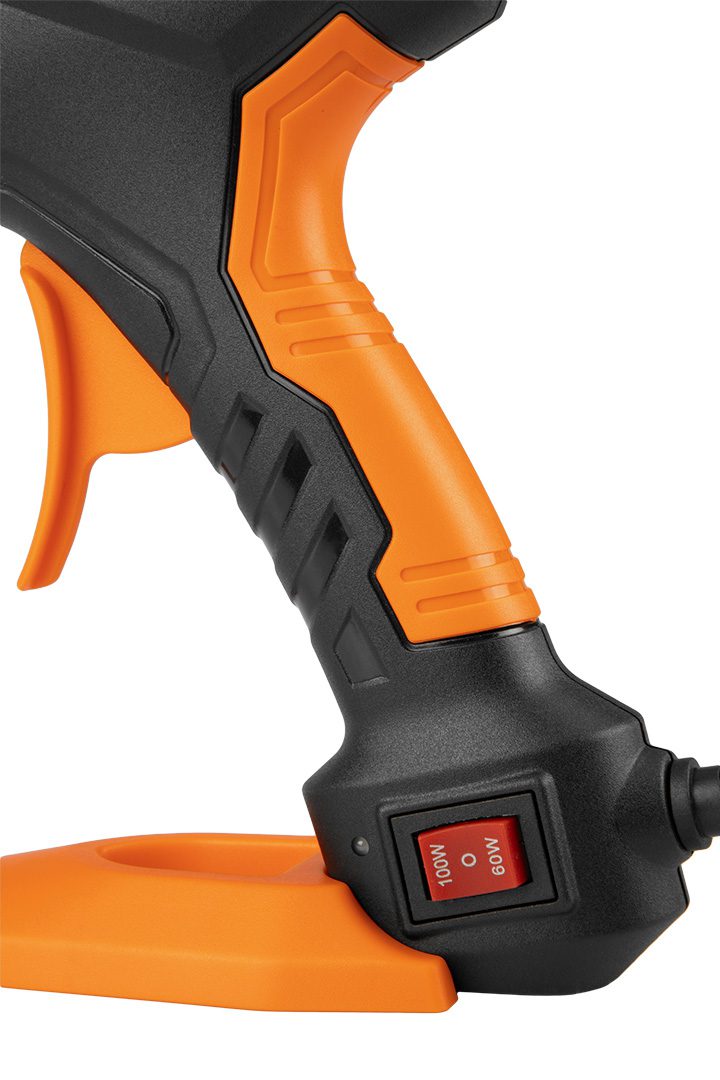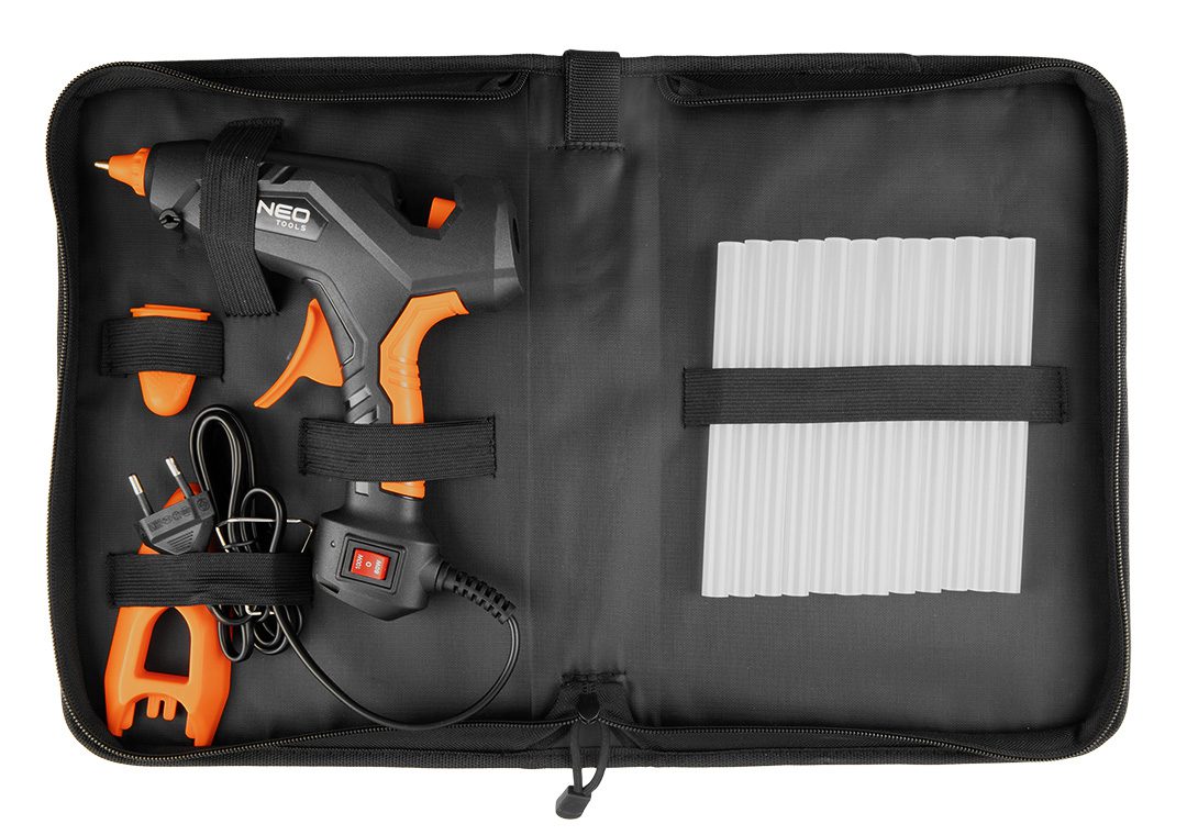 Набір: клейовий пістолет 11 мм, 60/100 Вт, 12 клейових картриджів, 3 захисні насадки для пальців, тканинний чохол 17-100 від NEO – це комплексний набір, який стане в нагоді в майстерні любителя "зроби сам" або художника, при ремонті килимів або виготовленні меблів. До нього входить клейовий пістолет потужністю 60 або 100 Вт, що підходить для патронів діаметром 11 мм. Агрегат працює в двох температурних режимах: 120 і 190 градусів за Цельсієм. Він оснащений практичним запобіжником, ефективним керамічним нагрівачем PTC та вимикачем з підсвічуванням. Має мідну змінну насадку для запобігання капання. Час нагрівання становить від 3 до максимум 5 хвилин. Комплект комплектується пластиковою підставкою для стійкості, 12 клейовими картриджами калібру 11 мм, 3 захисними кожухами для пальців та тканинним чохлом на блискавці.