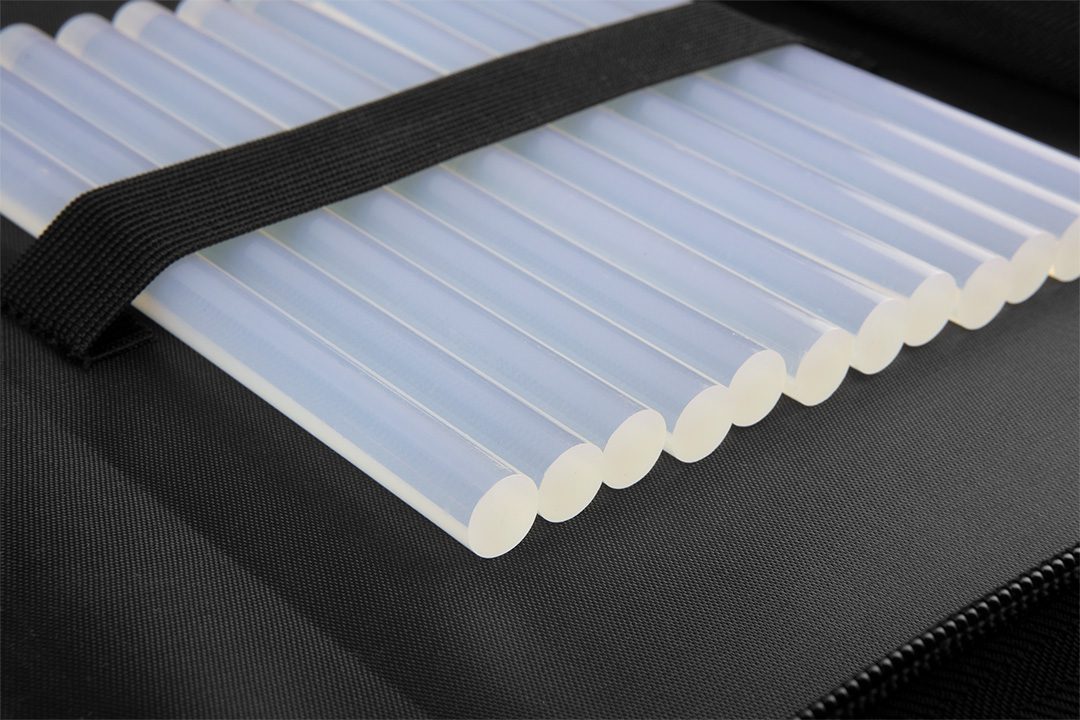 Набір: пістолет для клею 11 мм, 60/100 Вт, 12 вставок з клею, 3 обмежувачі для пальців, тканинні футляри