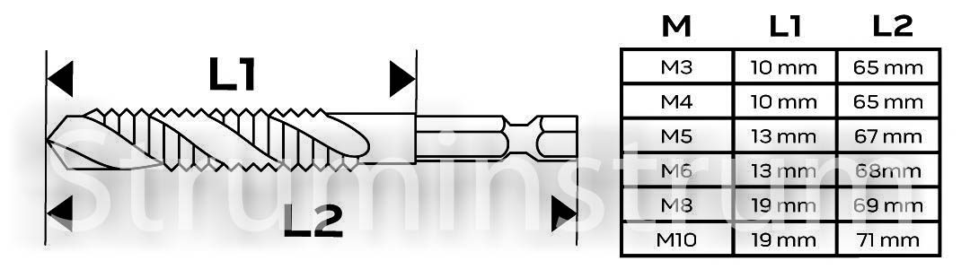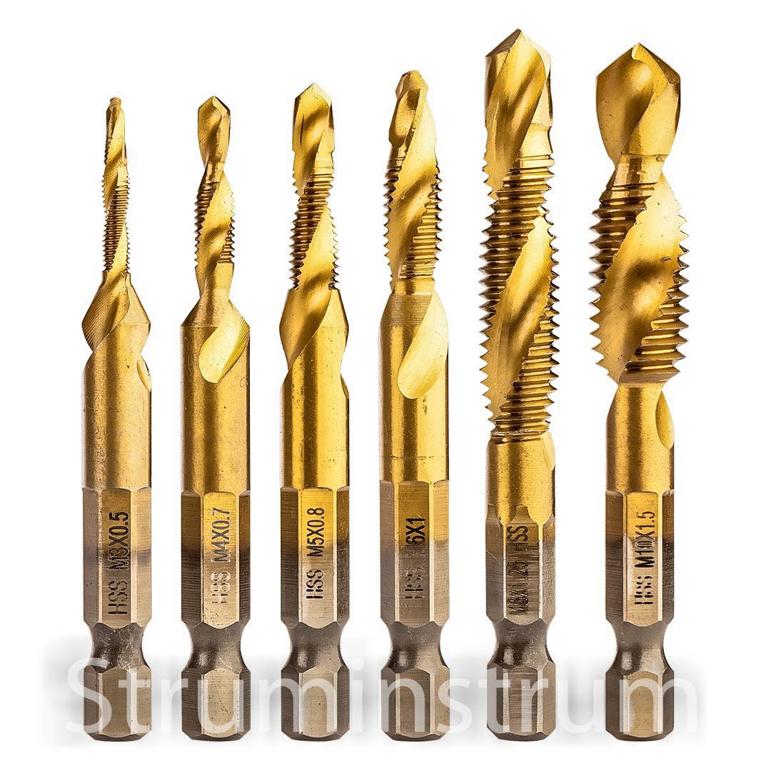 Набір свердел для нарізання різьби HSS TiN, M3 – M10, шестигранник, 6 шт.