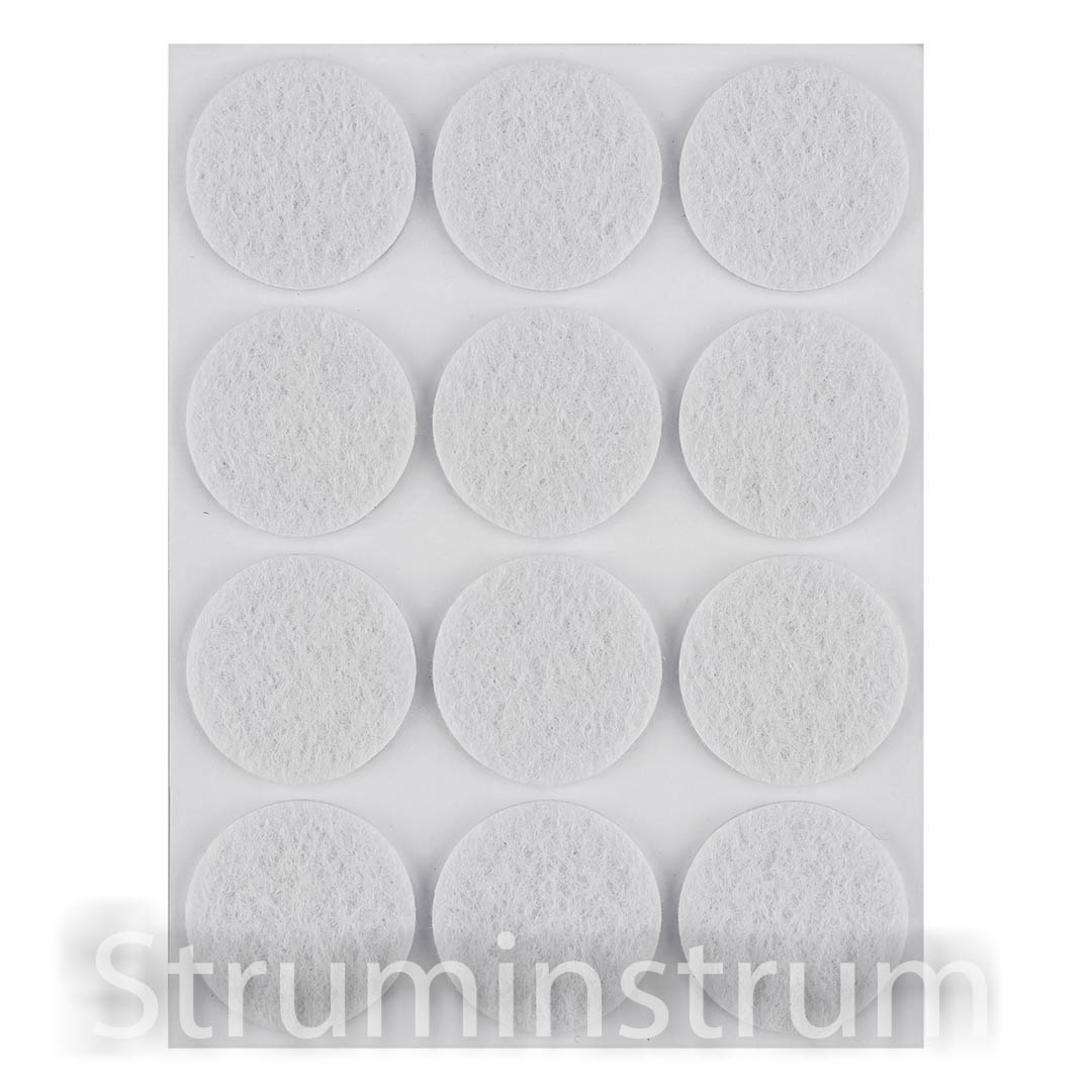 Накладки самоклеючі круглі фетрові, білі 28 мм, 12 шт. (85-205)