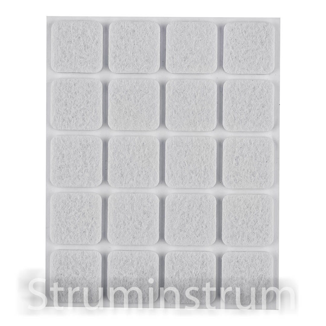 Накладки самоклеючі квадратні фетрові, білі 20×20 мм, 20 шт. (85-208)