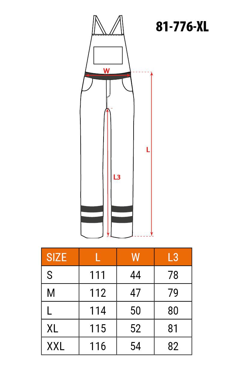 Напівкомбінезон робочий NEO підвищеної видимості – це практичне рішення, що підвищує безпеку людини, що полягає у візуальному позначенні присутності людей, що її носять при денному освітленні і вночі при штучному освітленні, наприклад, у світлі автомобільних фар. Зшитий з високоякісного поліестерового матеріалу типу Оксфорд. Водостійкість гарантує поліуретановий шар, а матеріал, що дихає, підвищує комфорт користування. Гарантією якості є європейський сертифікат та виготовлення відповідно до вимог стандарту EN ISO 13688:2013. Відповідність вимогам європейських стандартів забезпечує сертифікат РЄ.