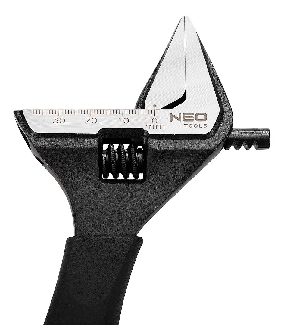 Ключ розвідний NEO кований з міцної хромованадієвої сталі. Відрізняється дуже широким робочим діапазоном губок. Просвіт губок на 40% більше, ніж у стандартних ключів. Розширена і витончена головка дозволяє працювати у важкодоступних місцях. Ергономічна рукоятка з TPR-покриттям, стійким до впливу масел і мастил. Якість інструменту підтверджено сертифікатом TÜV і 25-річною гарантією виробника. Бренд NEO виправдовує очікування професіоналів.