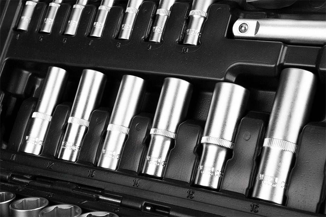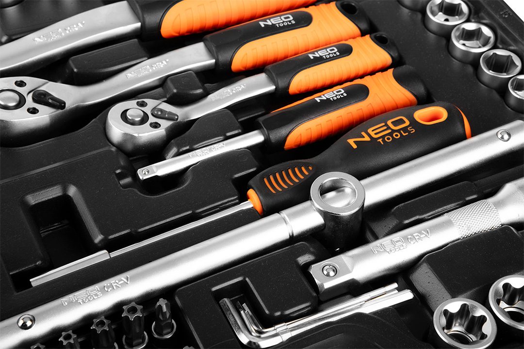 Набір інструменту 10-216 NEO – ідеальний набір для механічних застосувань. В наборі є торцеві головки, шарнір, шестигранні ключі, рукоятка, перехідник, рожково-накидні ключі, викруткові наконечники, подовжувачі та тріскачки. Продумана конструкція кожного інструменту забезпечує комфортну роботу протягом багатьох років.