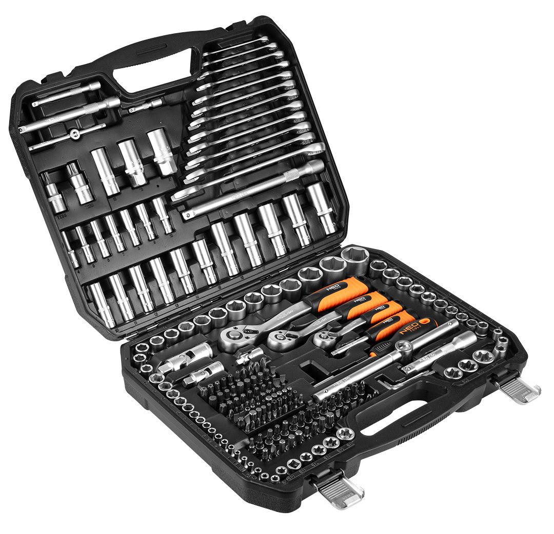 Neo Tools Набір інструменту, 216 од., 1/2", 3/8", 1/4", торцеві головки, ключі, кейс