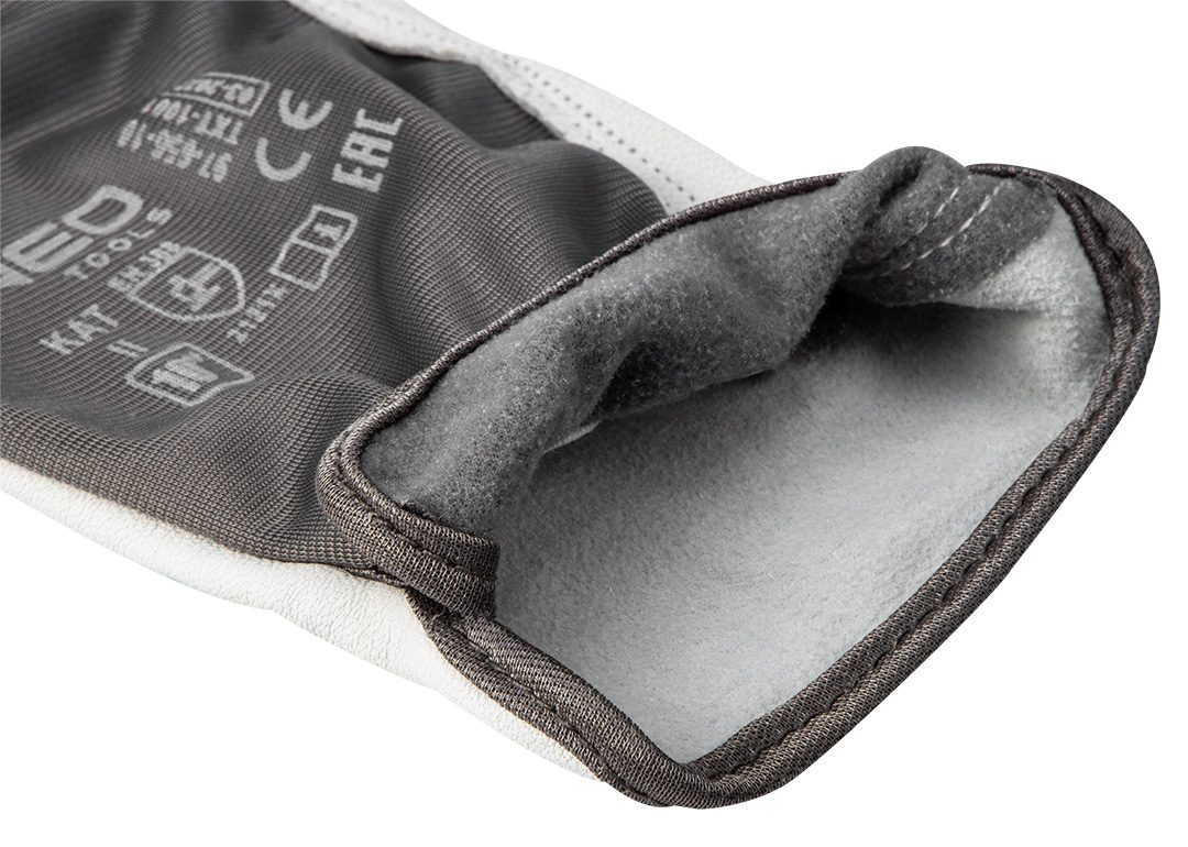 Робочі рукавички NEO забезпечують захист рук від бруду, подряпин та шкідливих умов. Захоплююча частина рукавичок виконана з козячої шкіри, а манжет з м’ятою. Маркування CE є гарантією безпеки, що підтверджує, що продукт відповідає всім вимогам ЄС.