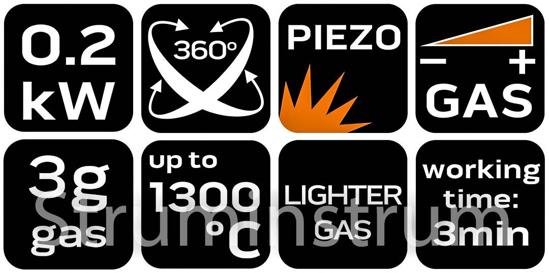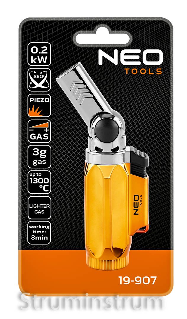 NEO TOOLS 19-907 — компактний газовий мікропальник із можливістю роботи в будь-якому положенні (360°) та регулюванням полум’я.