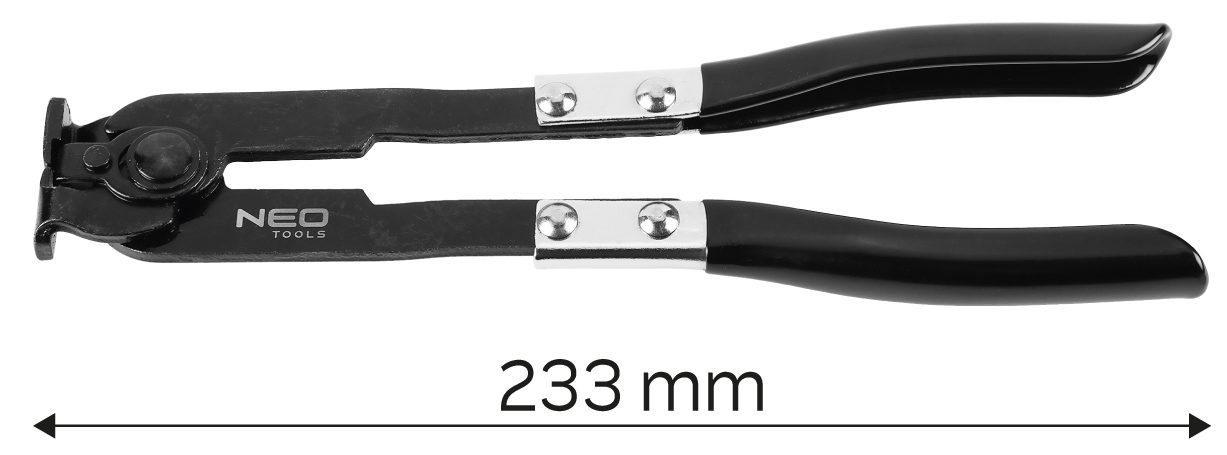 Кліщі 11-223 від NEO – це інструмент для затискання гумових шлангів в автомобілях (система охолодження, паливна система, система кондиціонування). Характеризуються практичними гумовими накладками на ручках. Кліщі також сумісні з найбільш поширеними в автомобільній промисловості кабельними стяжками.