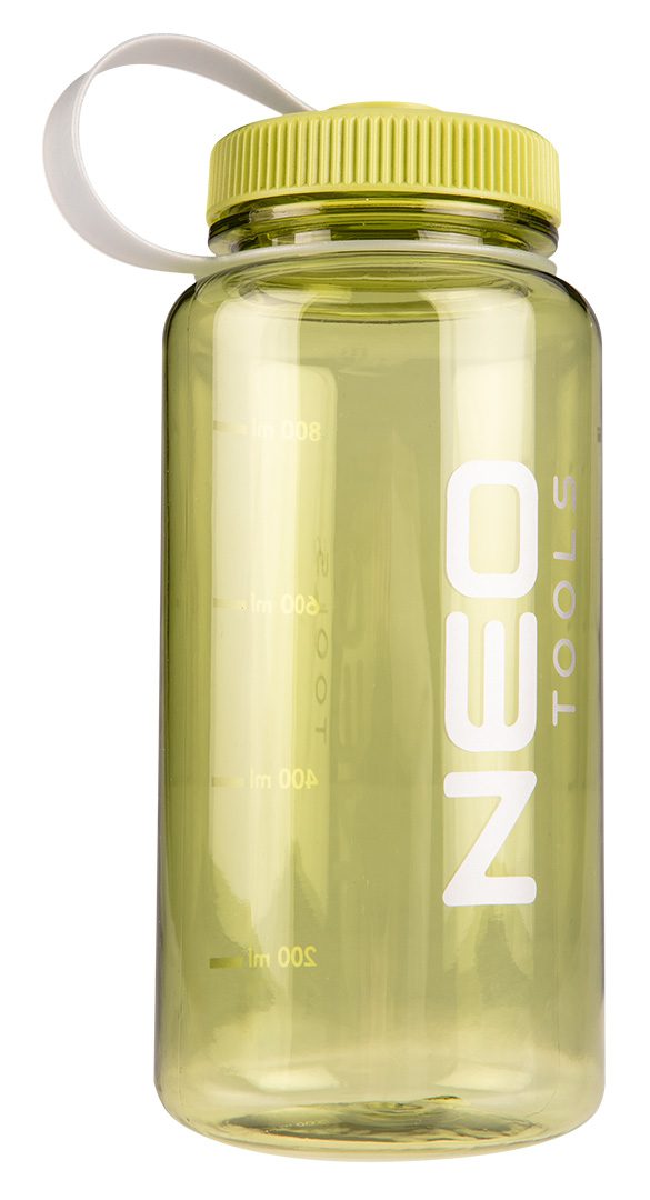 Пляшка для води 800 мл 63-167 від NEO TOOLS – це пляшка об’ємом 800 мл, виготовлена з матеріалу Tritan, що не містить бісфенолу А (BPA), дозволеного для контакту з харчовими продуктами. Пляшка має герметичну кришку з петлею для запобігання втраті, широкий 60-міліметровий горловину і шкалу в мл. За допомогою петлі її легко носити з собою або прикріпити, наприклад, до рюкзака. Пляшка для води від NEO TOOLS має сертифікат LFGB. Рекомендується для повсякденного використання, під час навантажень в походах або для спортсменів.