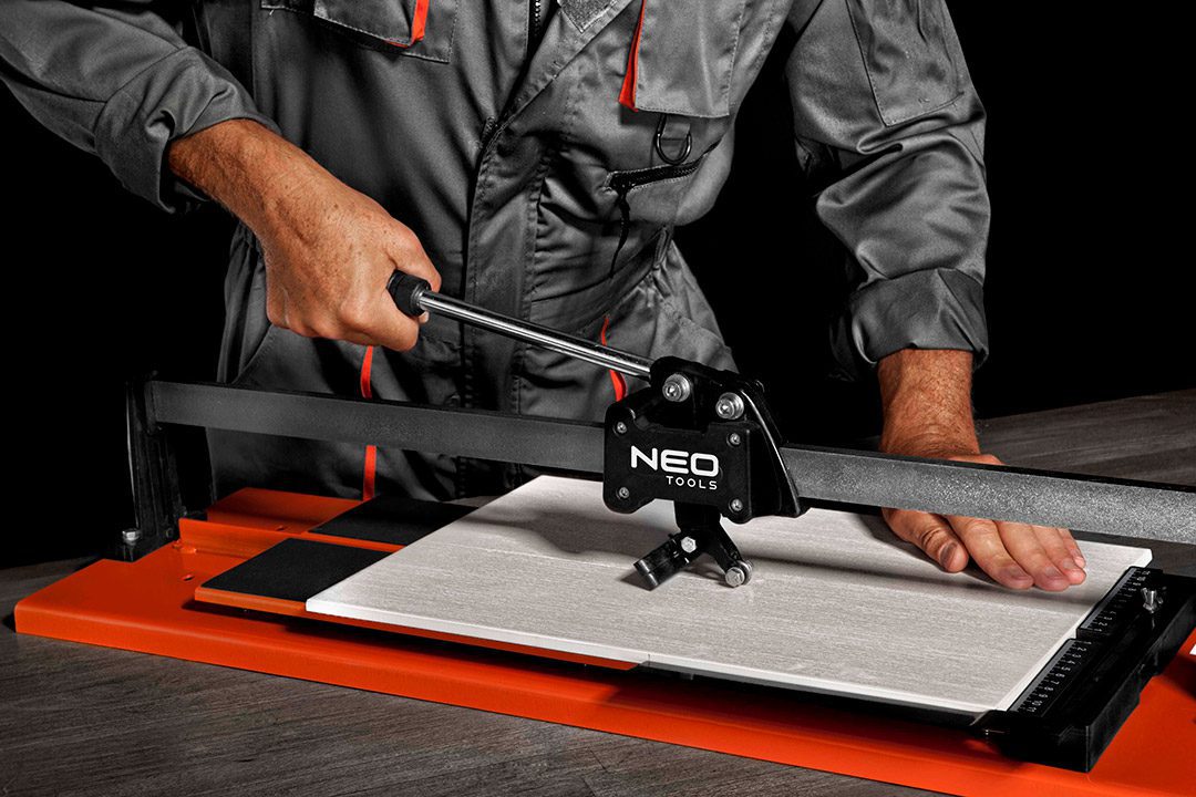 Плікторез NEO із різальним ножем діаметром 16 мм. Оснащений одинарною напрямною із міцного смугового металу 30 x 12 мм. Завдяки голівці на підшипниках, можна отримати точніше розпилювання. Метрична шкала разом із косинцем дозволяють точно розташовувати керамічну плитку. Додатковою перевагою є наявність амортизованої робочої основи товщиною 2 мм, покритої пористою гумою, що допомагає відламувати плитку після надрізу. Гарантією високої якості та надійності інструменту є сертифікат TÜV Rheinland.