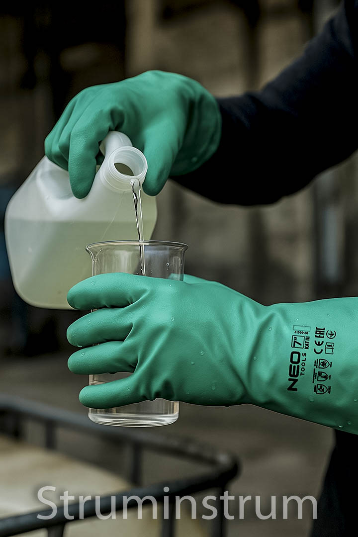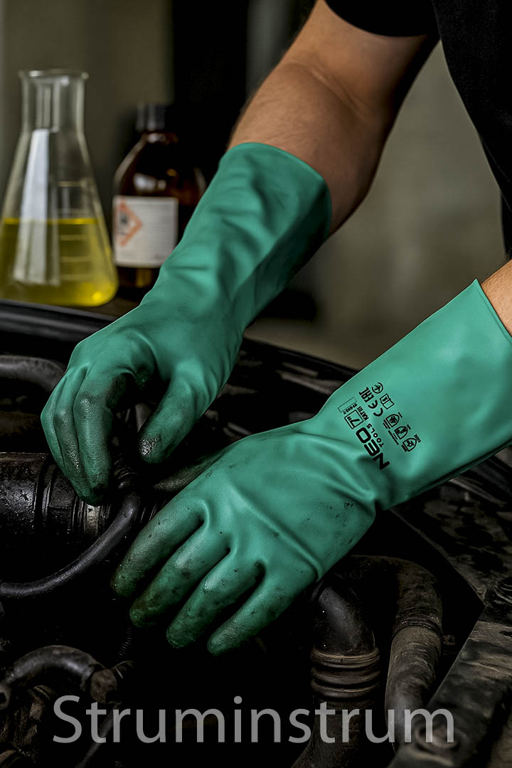 Хімічно стійкі рукавички NEO TOOLS забезпечують захист від агресивних речовин, мають довгу манжету для захисту зап’ястя та передпліччя, стійкі до води, жирів, мастил, масел, миючих засобів і хімікатів.