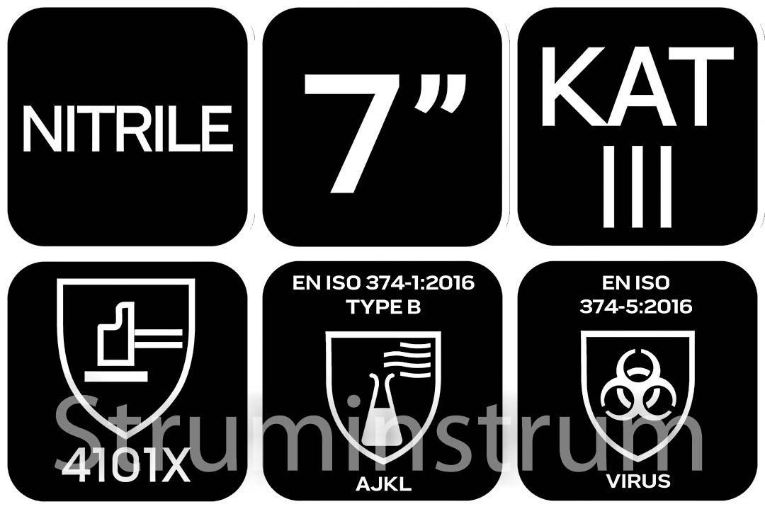 - Захист від вірусів, грибків і бактерій: EN374-5
