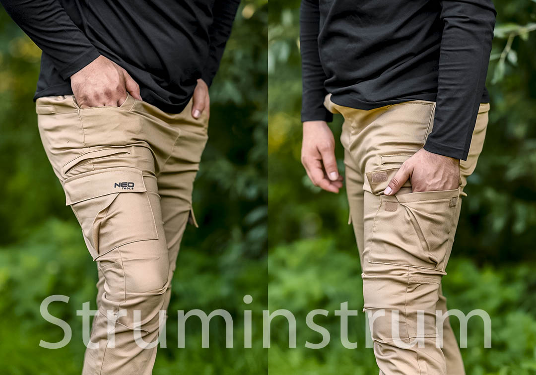 NEO TOOLS 81-285-L — робочі штани типу джоггер у бежевому кольорі з унікальним авторським дизайном та високим рівнем комфорту.